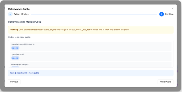 Admin can select models to expose on public model hub -> Users can go to the public url (/ui/model_hub_table